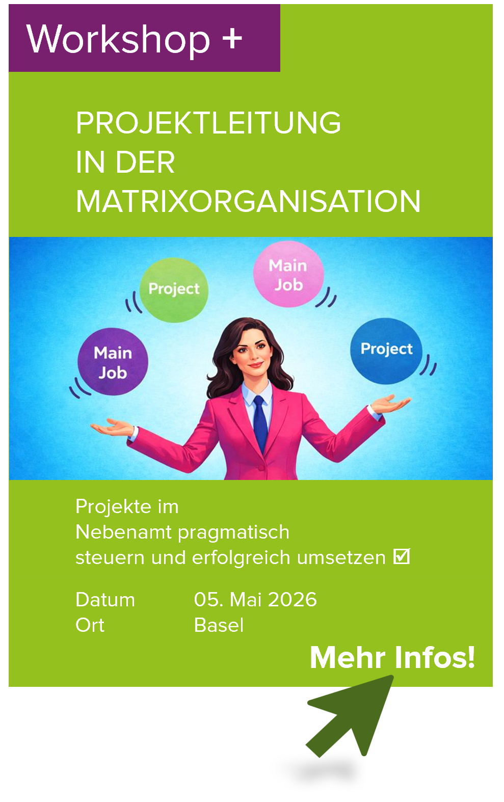 Das Training «Projektleitung in der Matrixorganisation – Projekte im Nebenamt pragmatisch steuern und erfolgreich umsetzen» bieten wir sowohl als öffentlichen wie auch in-house Kurs an. Der Fokus liegt auf den Herausforderungen der lateralen Führung. Teilnehmende erwerben fundierte Methoden- & Führungskompetenz für die erfolgreiche Steuerung von Projekten in multidimensionalen Organisationsformen.